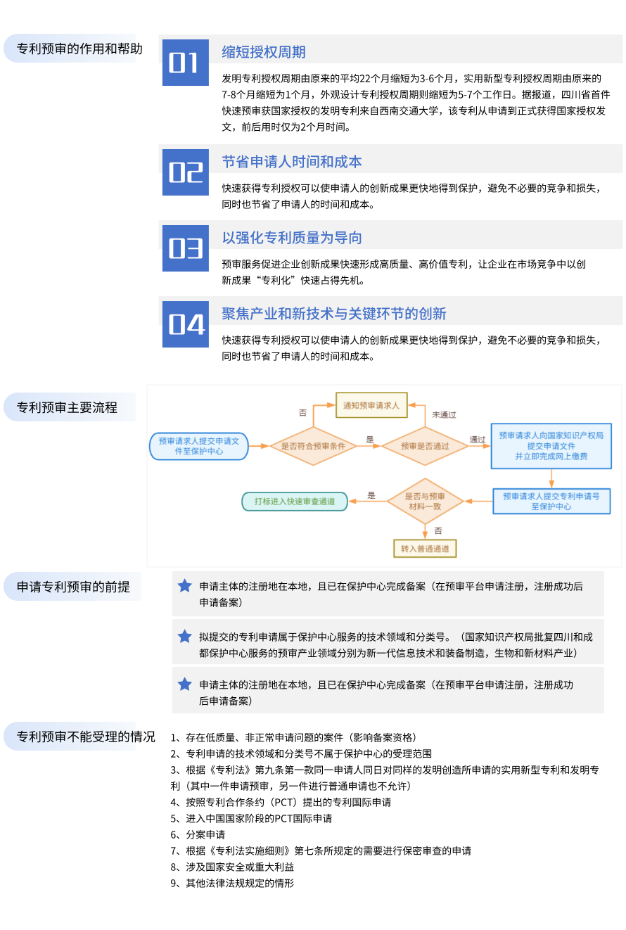 从专利申请到获得授权,需要一段相当长的时间,根据国家知识产权局发布的《推动知识产权高质量发展年度工作指引(2024)》,我国发明专利平均审查周期将压减到15.5个月左右。尽管时间已经越来越短,实际生活中,专利申请人往往由于种种理由迫切需要获得专利。专利申请预审是专利加快审查的途径之一,是在向国家知识产权局提交正式专利申请前的预先审查。经知识产权保护中心预审合格的专利申请,可进入国家知识产权局快速审查通道,专利申请的审查周期将大幅缩短。