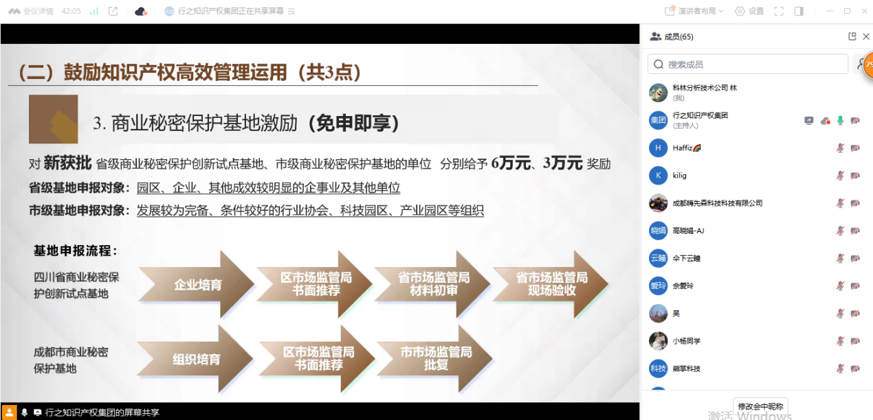 活动邀请行之集团讲师,聚焦武侯区知识产权领域激励政策三大方向、九个项目资助要点、申报条件及申报流程展开细致讲解,帮助企业准确把握政策内容,精准识别政策“风向标”,将政策红利转化为创新发展的“燃料”。