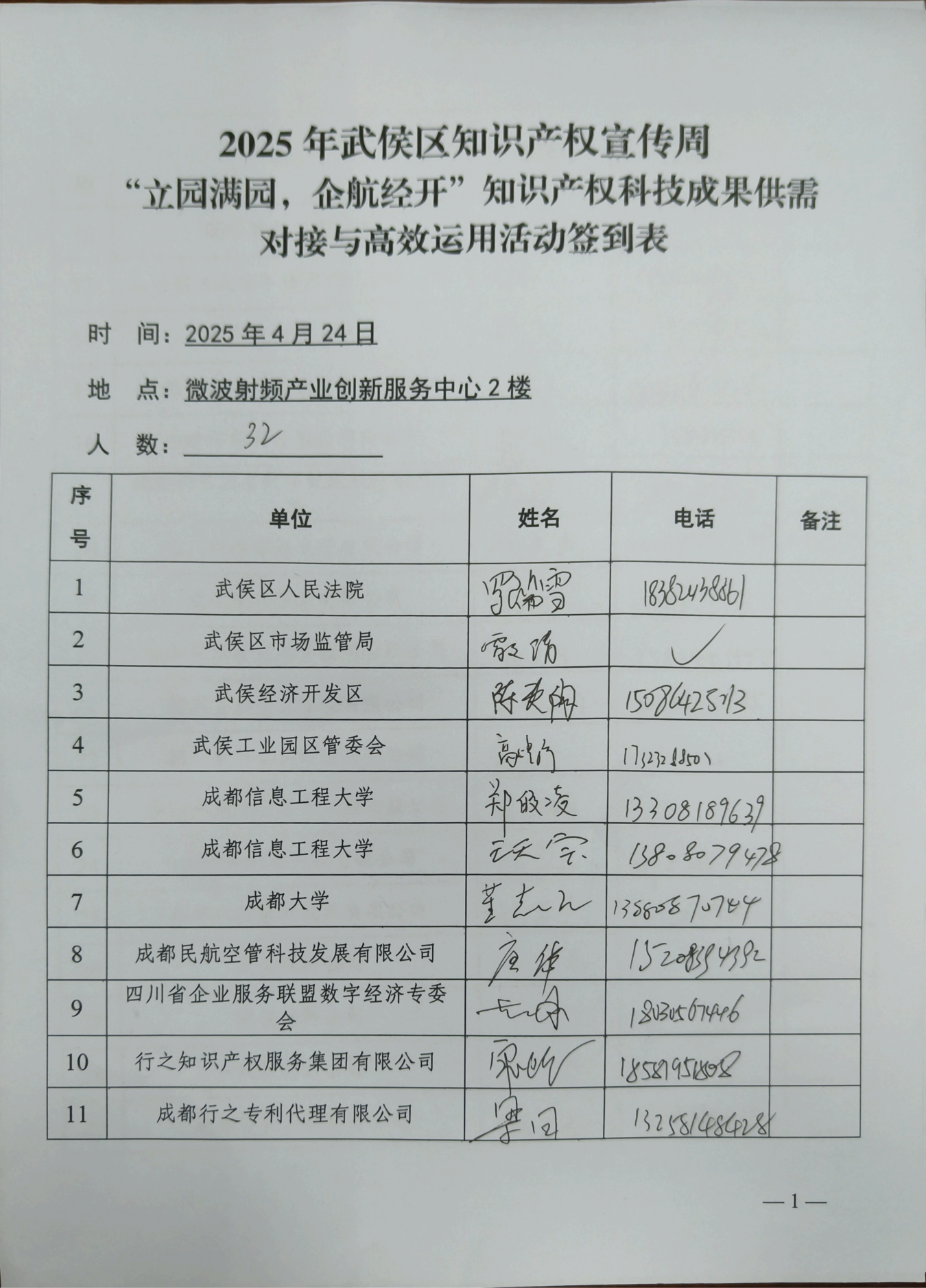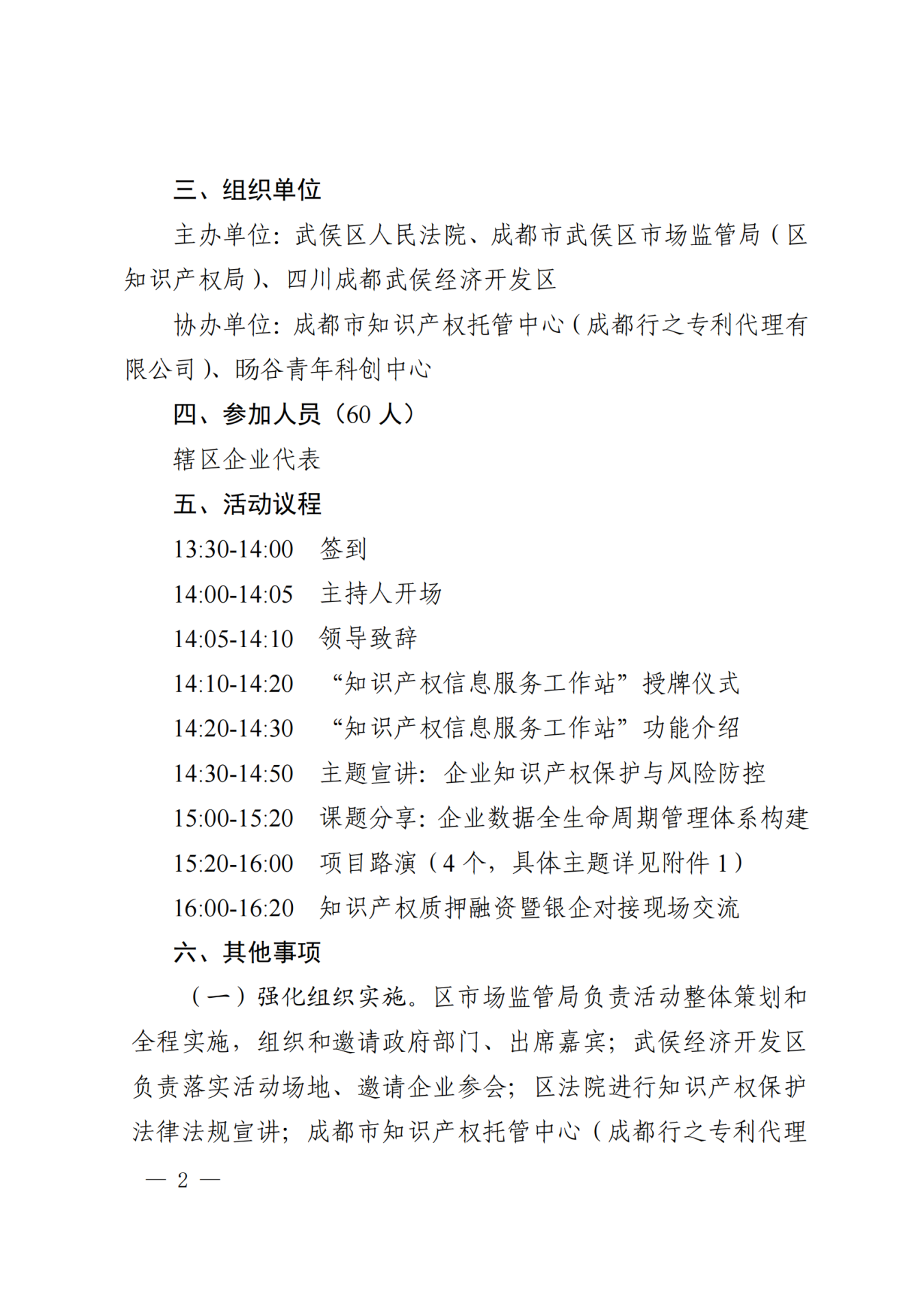 此次活动的成功举办,不仅为武侯区企业提供了知识产权领域的合作交流平台,更为区域科技创新与产业升级注入新动力。未来,武侯区将持续深化知识产权领域改革创新,不断完善知识产权服务体系,强化知识产权保护力度,营造良好的创新生态环境,为推动区域经济高质量发展提供坚实的知识产权保障。