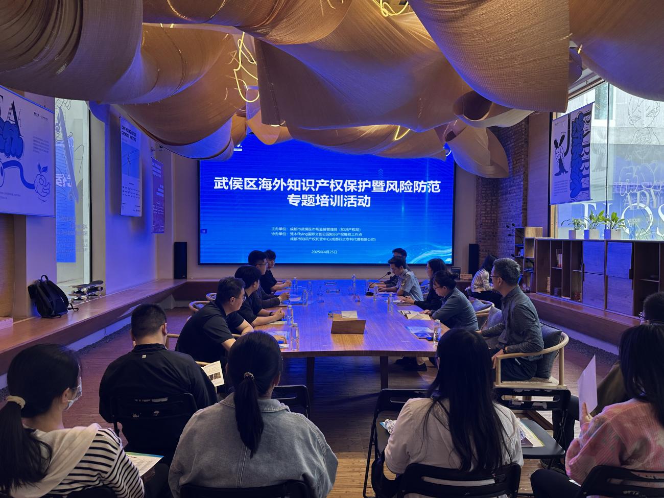 2025年4月20日至26日是全国知识产权宣传周。为进一步强化辖区企业海外知识产权保护意识,提升跨境经营知识产权风险防控能力,4月25日,武侯区市场监管局(区知识产权局)联合梵木Flying国际文创公园知识产权维权工作点、成都市知识产权托管中心(成都行之专利代理有限公司)举办武侯区海外知识产权保护暨风险防范专题培训活动。活动在线上线下同步开展,吸引科技型、外向型企业及知识产权服务机构代表近90人参会。